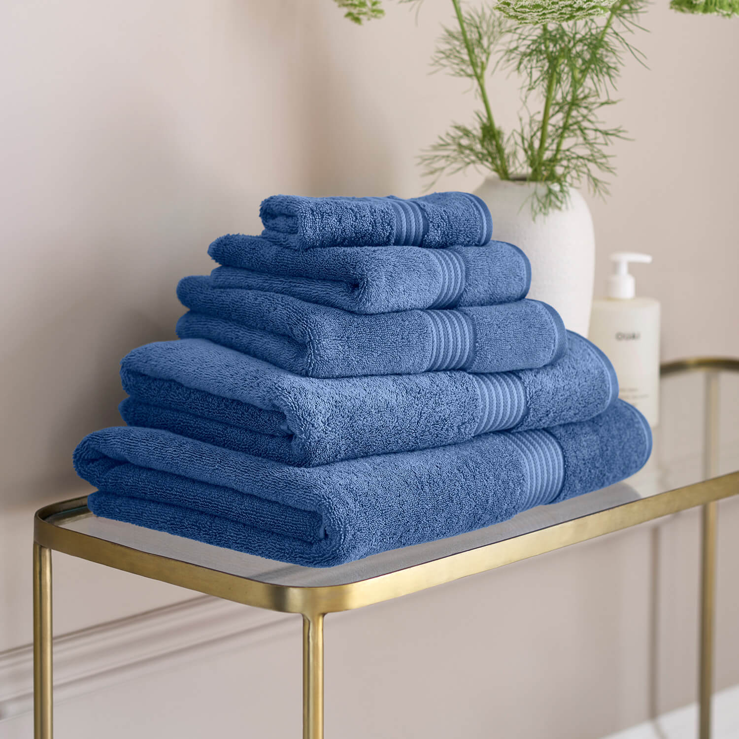 Supreme-håndklæder i farven Deep Sea er vævet yderst tæt og produceret i 100% Supima bomuld, hvilket gør, at håndklæderne er ekstra tykke og dejlig bløde. Det er også med til at gøre, at håndklæderne har en super god sugevne.