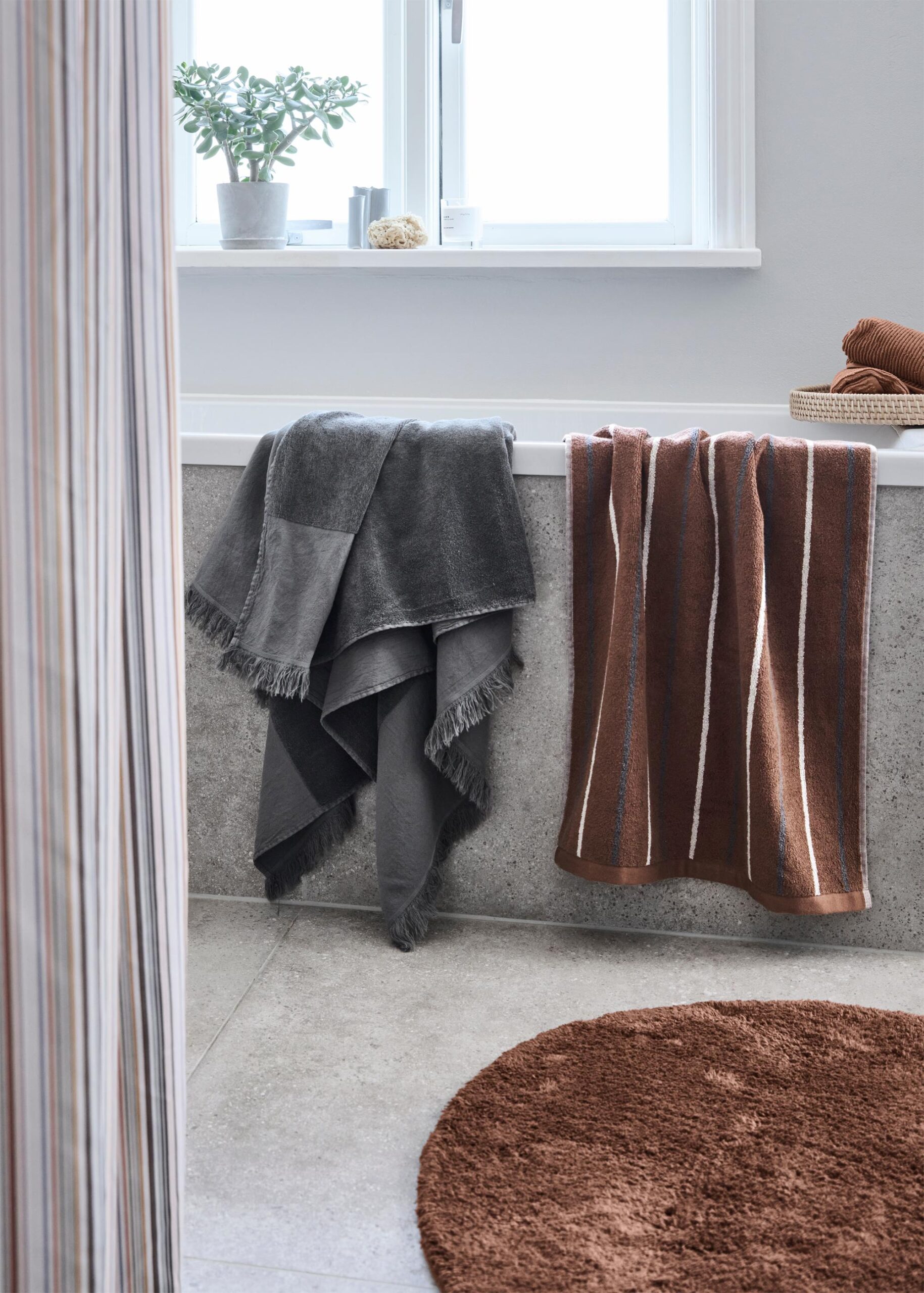 Leder du efter en blød bademåtte? Så er denne runde Loop-bademåtte i farven Clay måske noget for dig. Den har en diameter på 75 centimeter og er lavet af 100% bomuld.