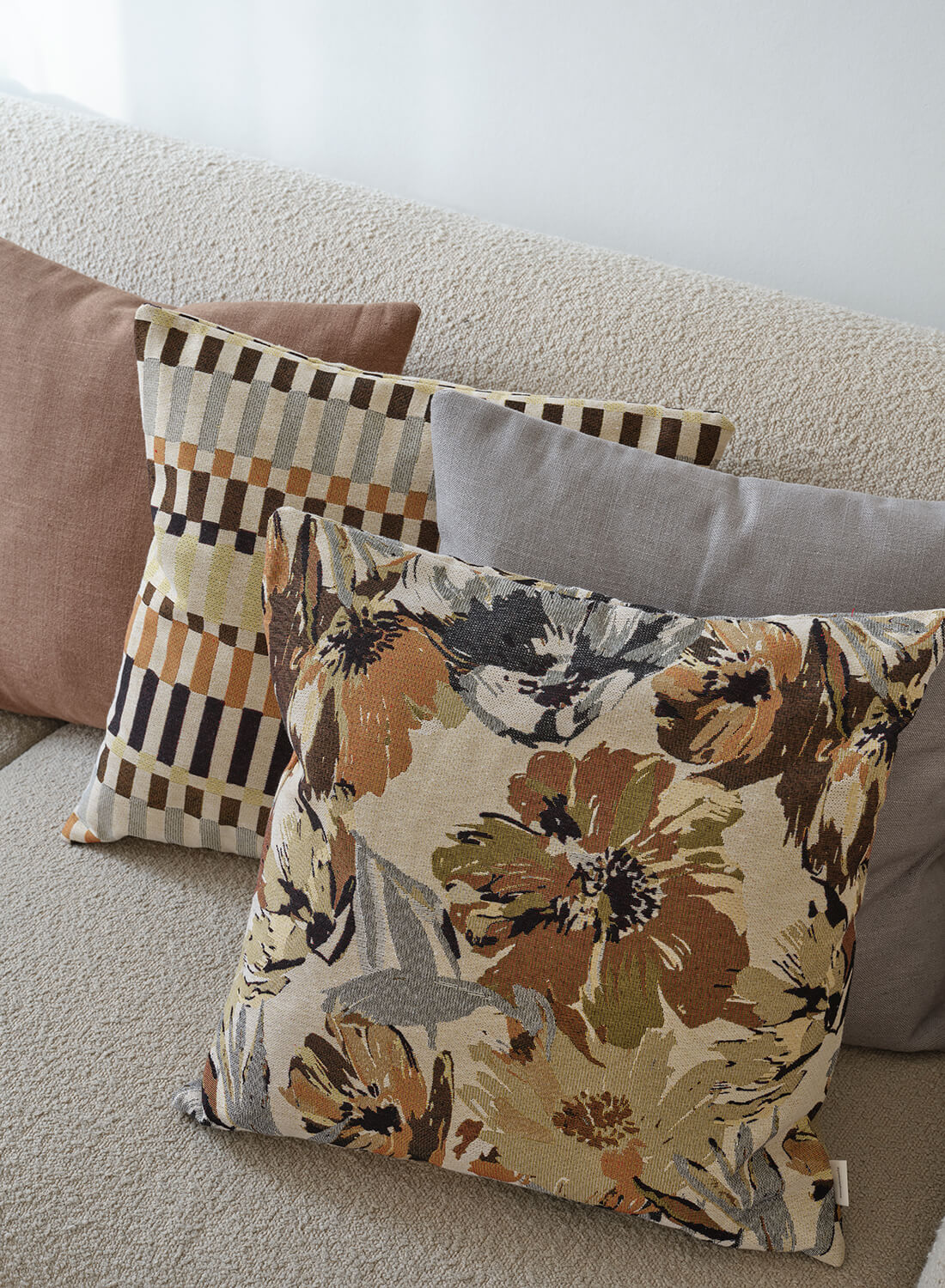 Lilo pudebetræk i brun fra Compliments bringer et kunstnerisk og varmt udtryk ind i hjemmet. Det fine, maleriske blomstermønster kombinerer bløde former med jordnære nuancer og skaber en elegant dybde i stoffet. Den vævede kvalitet giver et eksklusivt præg, som gør puden til et dekorativt fokuspunkt i både sofa og seng.