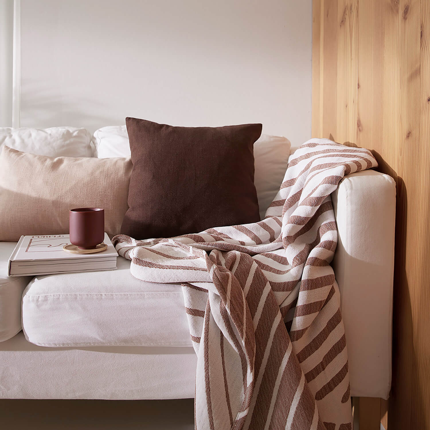 Mangler du nye betræk til dine sofapuder? Vores fine betræk Marrakech fra Compliments er tilgængelige i et væld af farver – herunder denne farve Brown. Disse betræk til pyntepuder er nøje fremstillet af en blanding af hør og viskose, der ikke kun tilføjer en naturlig struktur, men også afspejler en høj kvalitet. Lad dig inspirere af vores forskellige farver og størrelser, og skab dit eget unikke look.