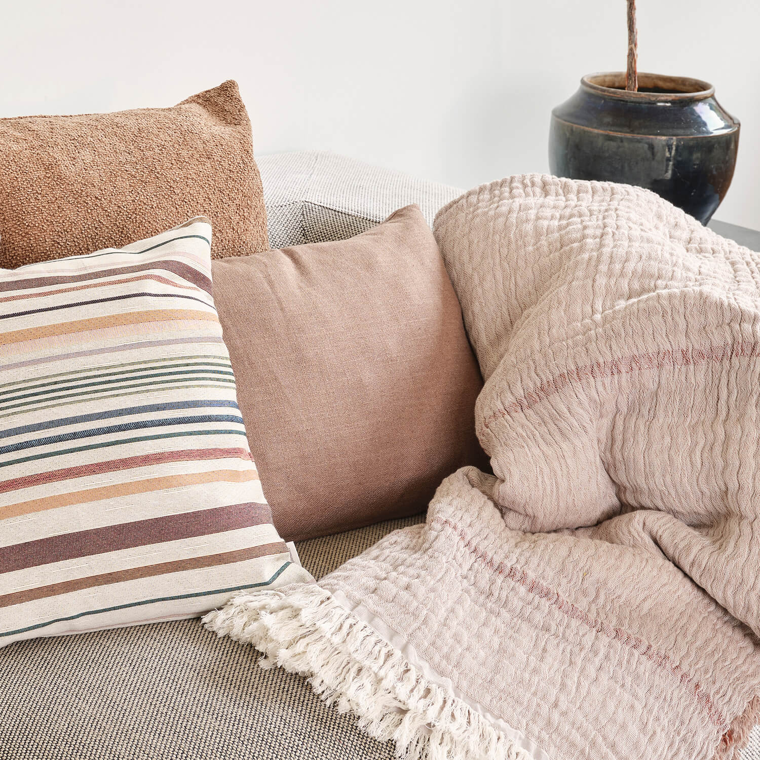 Skab et chic look med Taffy-pudebetrækket i farven Rose. Betrækket er ensfarvet, lavet i 100% polyester og har størrelsen 50×50 cm. Den luksuriøse bouclé-kvalitet giver struktur og løfter indretningen. Serien findes i flere størrelser og farvenuancer. Monteringspude medfølger ikke.