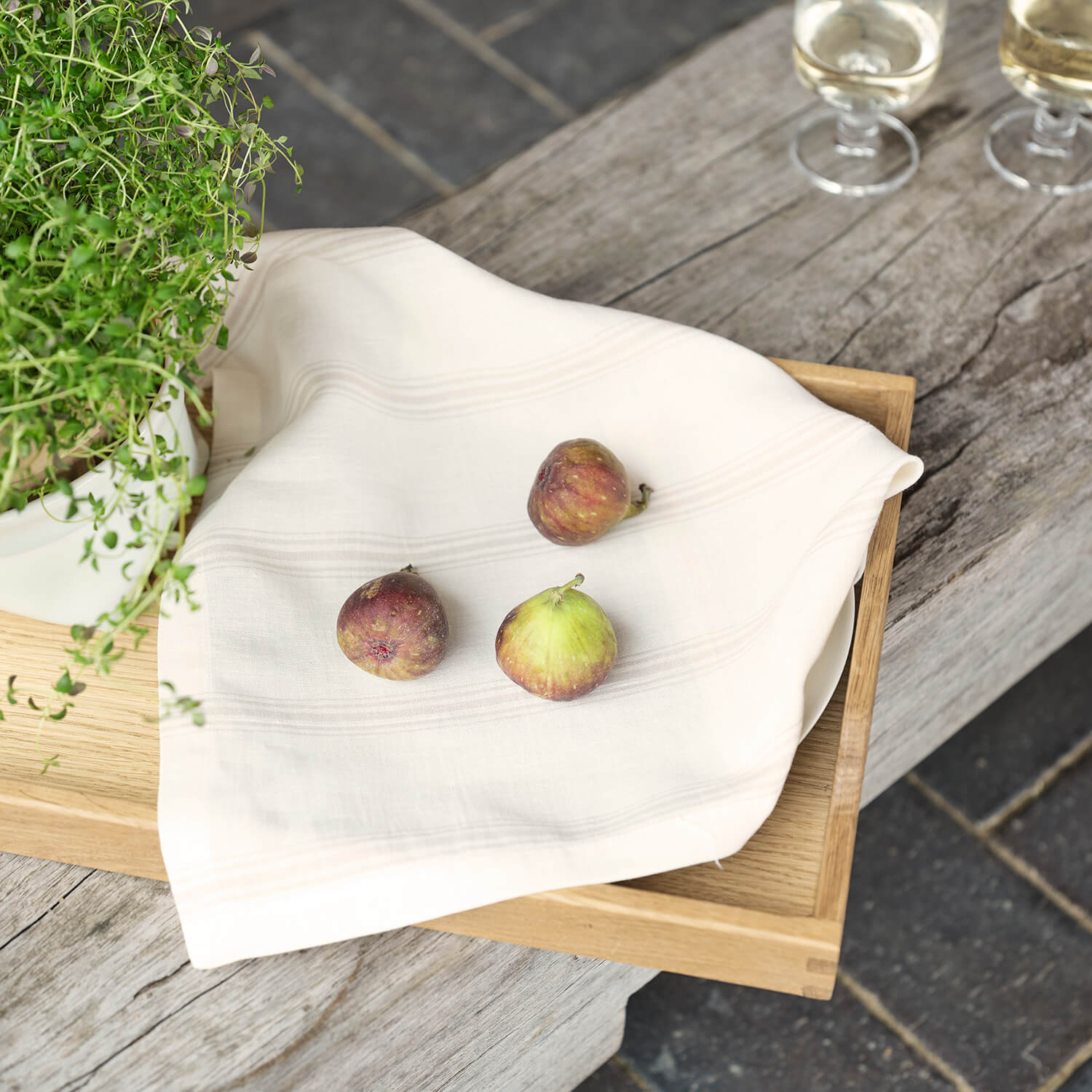Stofservietterne Brise fra Compliments i farven Sand er lavet af 52% hør og 48% bomuld og måler 45×45 cm. Servietterne er lette og luftige og fremstillet netop på grund af den behagelige hør- og bomuldsblanding. De klassiske sandfarvede striber giver et tidløst udtryk, som passer til både hverdag og festlige anledninger.