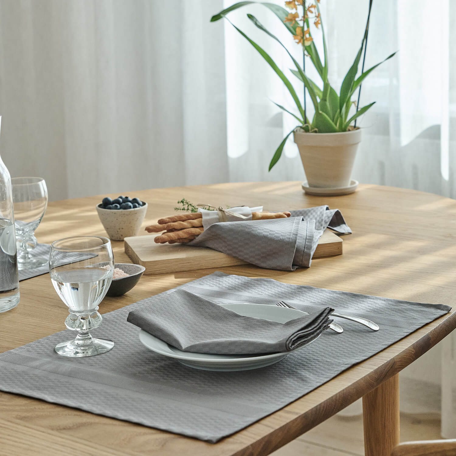 Kombinér dem med den matchende Tile-dug for et harmonisk og stilfuldt bord.