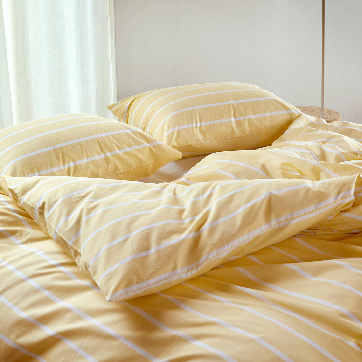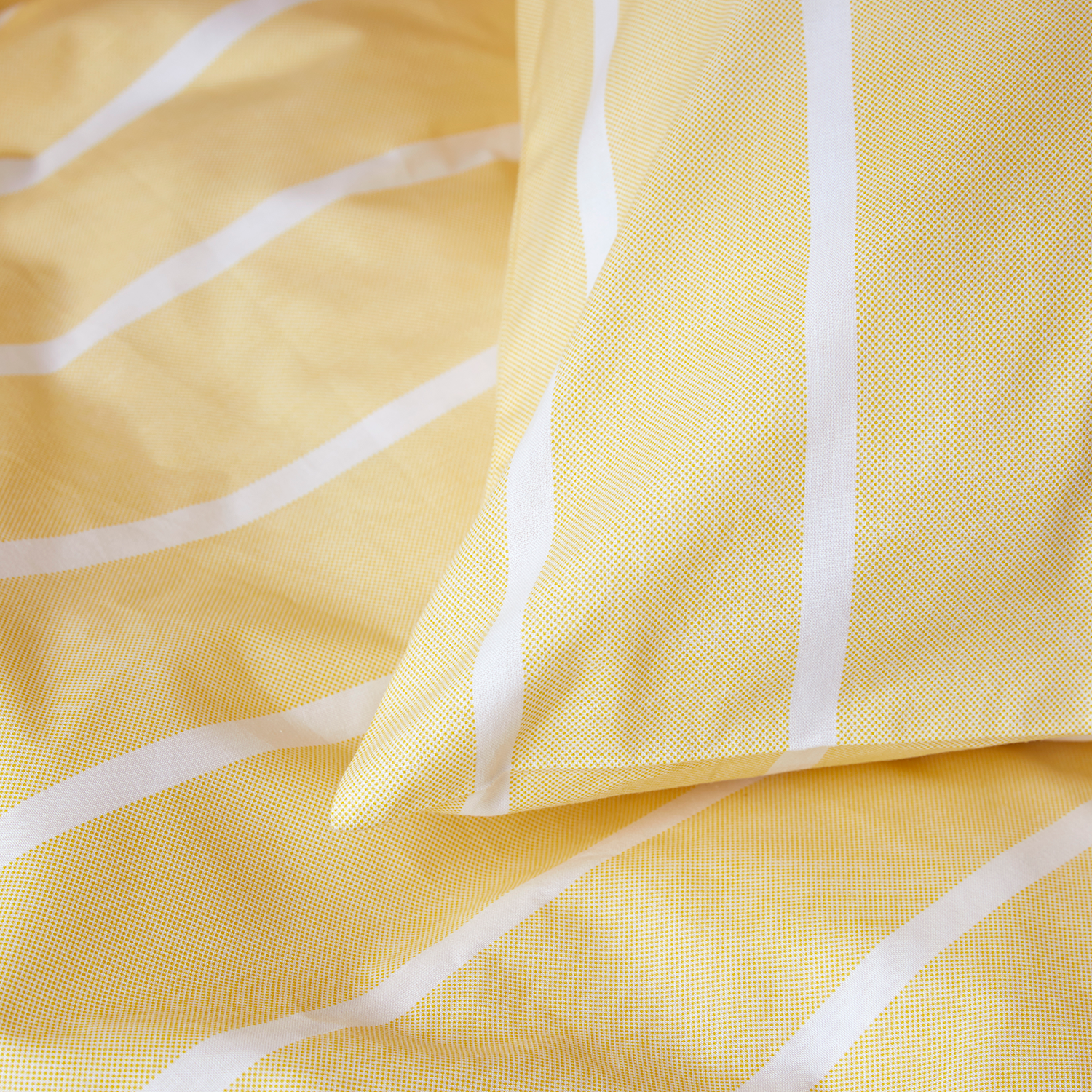 Sander i gul bringer lys og varme ind i soveværelset med sin klare, solrige nuance og fine kvalitet i 100% ekstra fin bomuld. Materialet har en glat og let overflade, der føles behagelig mod huden og giver en skøn fornemmelse natten igennem.