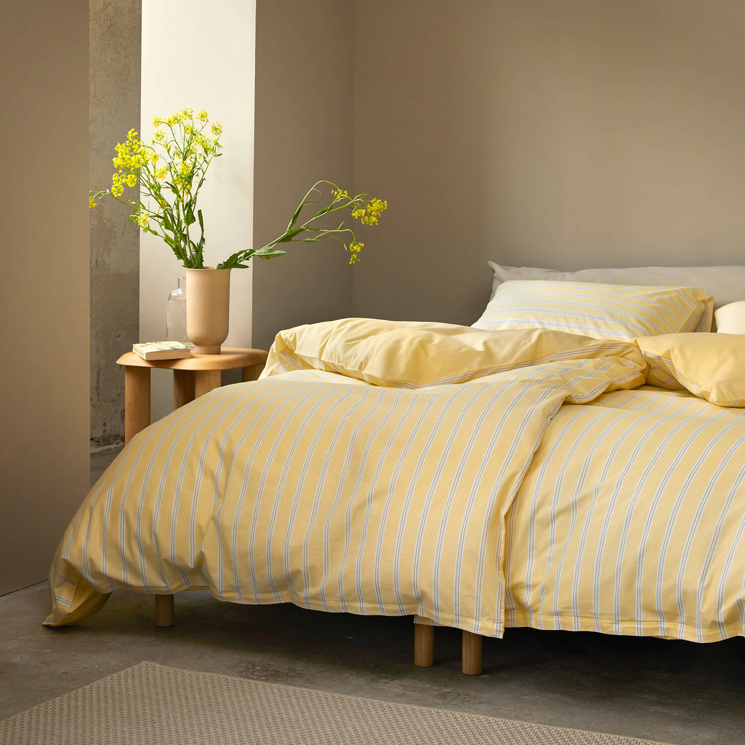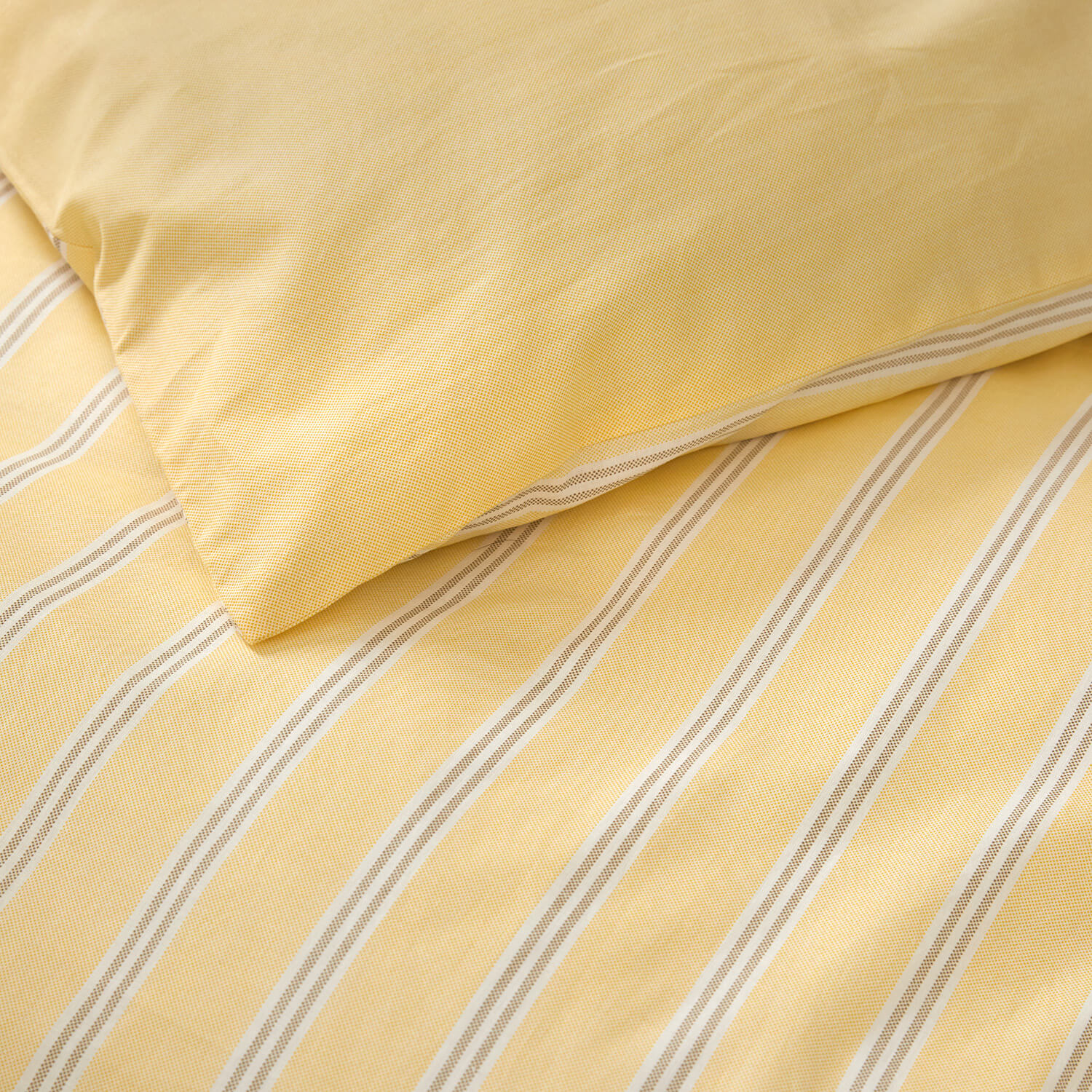 Ylva-sengesættet fra Høie i 100% bomuld skaber en afslappet og indbydende stemning med inspiration fra naturens farver. Den bløde og glatte kvalitet giver en behagelig nattesøvn samtidig med, at materialet er robust og holder formen. Den smukke gule tone giver et frisk pust til indretningen, mens de smalle striber tilfører et klassisk og stilrent præg. Easy Care-behandlingen gør, at sengetøjet fremstår glat og velholdt i længere tid. Praktisk lynlåslukning i bunden af dynebetrækket gør det nemt at skifte.