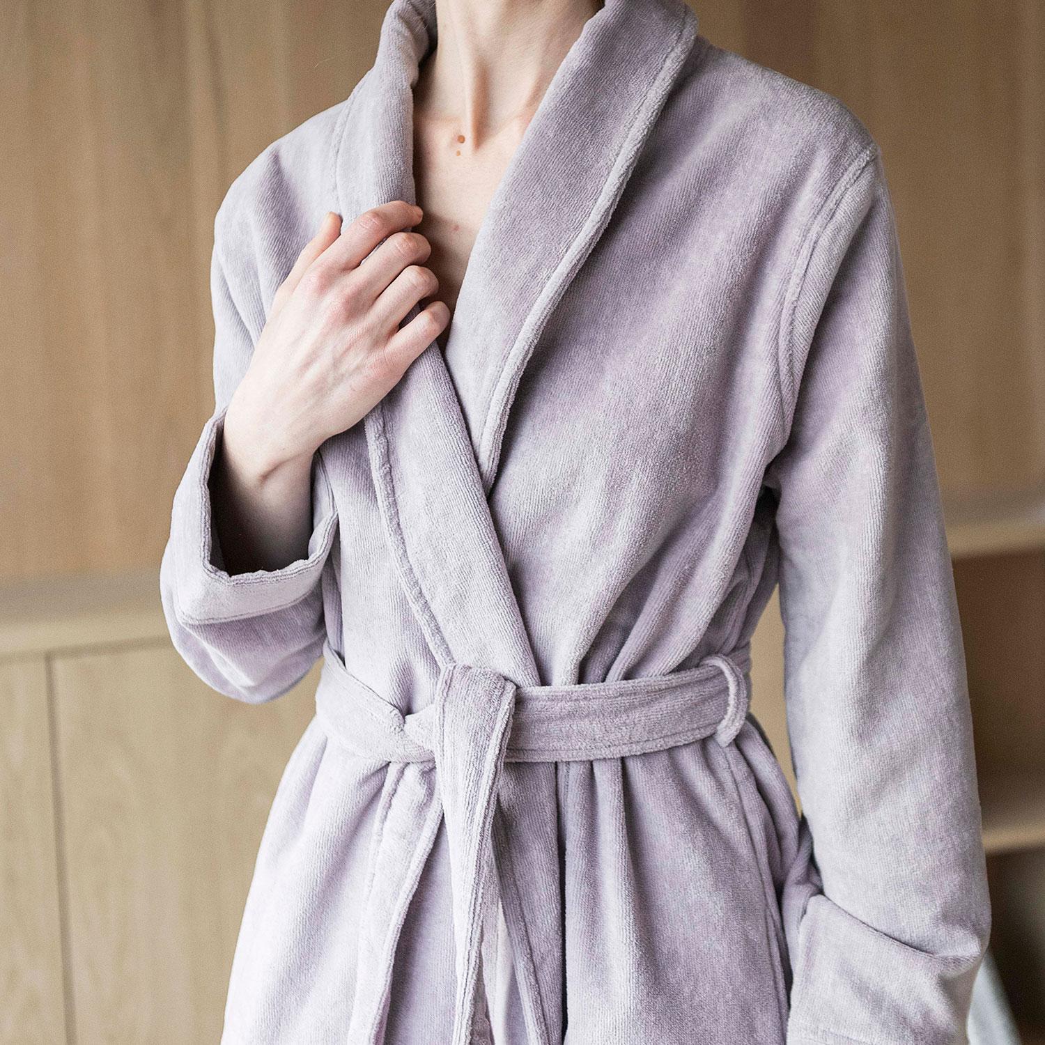 Morgenkåbe ”Svanen” til damer fra Høie of Scandinavia ses her i en smuk lavendel-lilla farve. Denne morgenkåbe kan også anvendes som badekåbe og er Oeko-Tex-certificeret samr produceret i 100% bomuld. Den er ydermere produceret med bomuldsfrotté på indersiden og en slags bomuldsvelour på ydersiden.