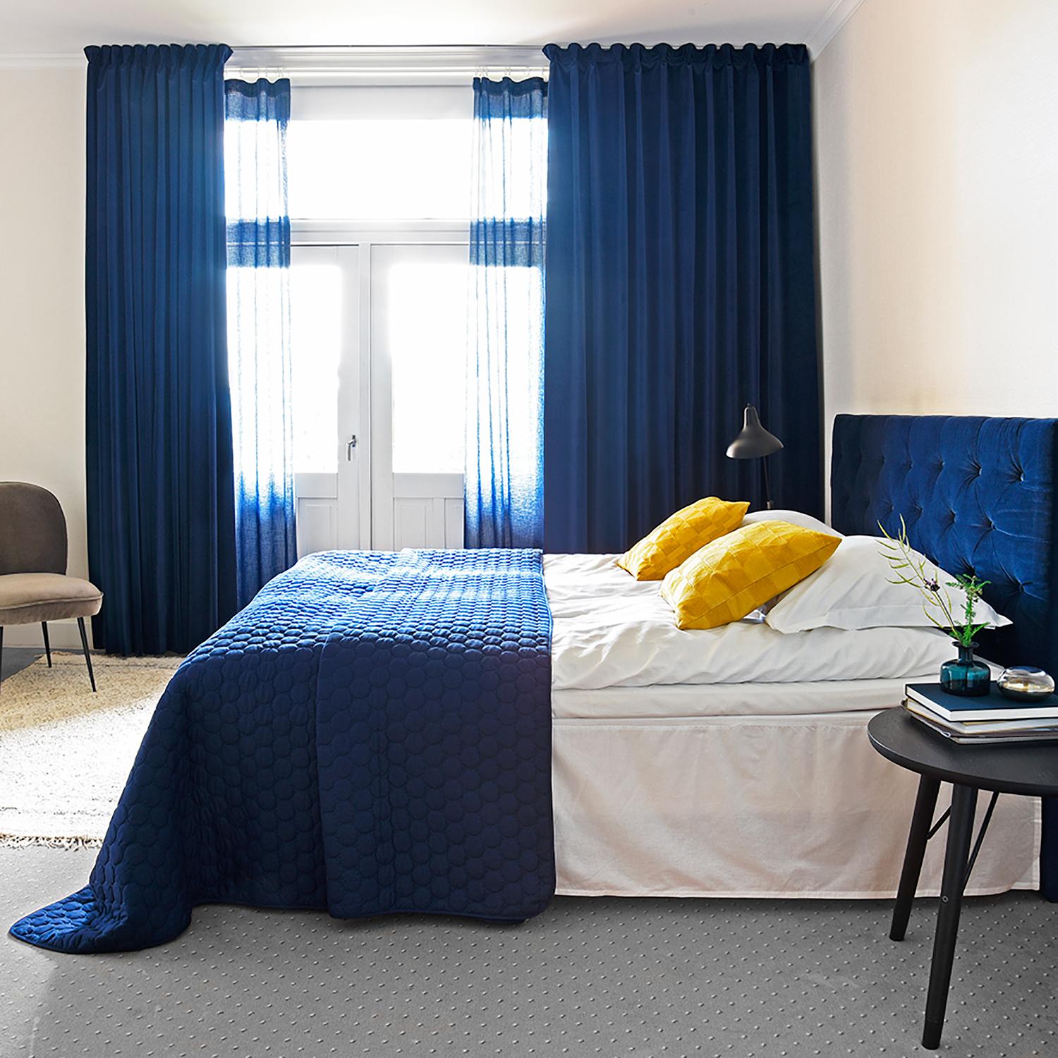 Opgrader dit soveværelse med det flotte, blå Pantomime-sengetæppe. Sengetæppet fås i 3 forskellige størrelser og 5 fine farver. De runde syninger bryder med den helt enkle stil og skaber et flot spil. Fuldend stilen med pyntepuder i matchende farver.