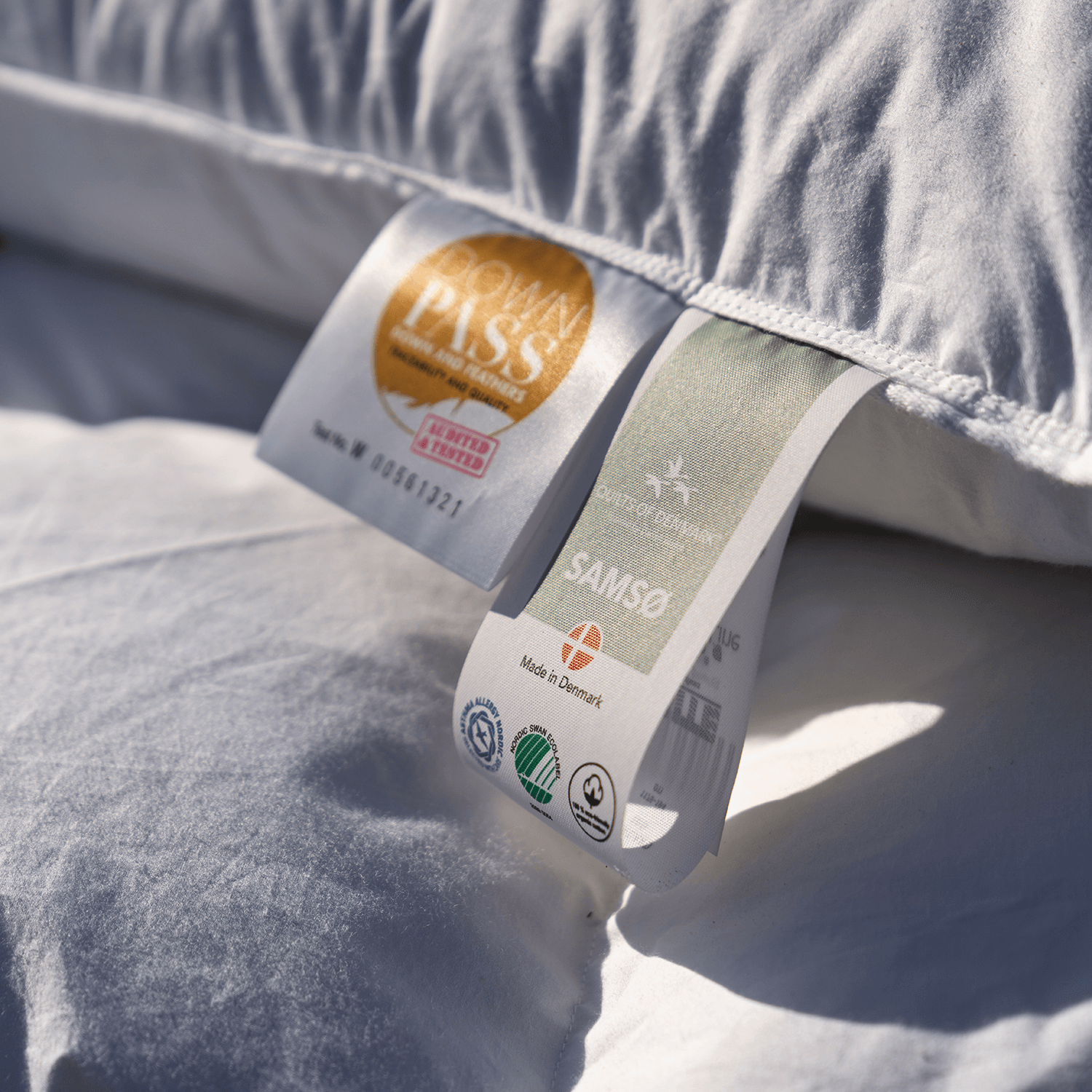 Samsø-dynen fra Quilts er Svanemærket og anbefalet af Asthma Allergy Nordic. Dynen er produceret i Danmark.