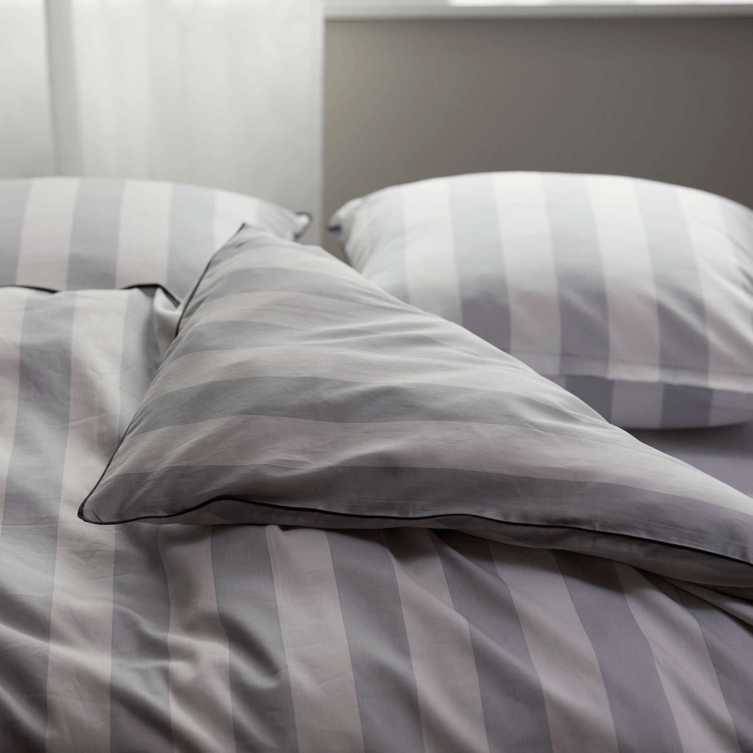 Södahls Ray-sengesæt forener komfort og klassisk design. Det er fremstillet i 100% økologisk bomuld og er Svanemærket. Sengesættet er designet med et tidløst stribemønster – her i farven Cloud Grey. Den fine kontrastfarvede piping giver et elegant udtryk i soveværelset. Stoffet er vævet i blød satinvævning med en let glans, som føles dejligt og giver en behagelig søvnoplevelse.