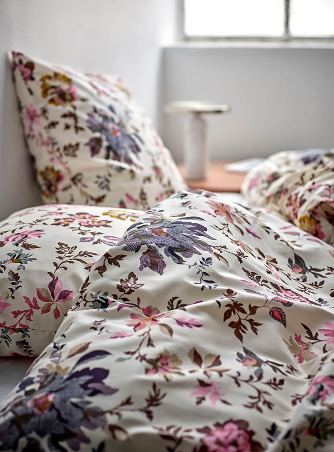 Tapestry i Pink er et romantisk sengesæt med et fint blomsterprint, der emmer af boheme og vintagecharme. Det kunstneriske design leder tankerne hen på nostalgisk elegance og skaber en varm og personlig atmosfære i soveværelset. Den fine satinvævning i 100% bomuld giver stoffet en blød og behagelig overflade med en diskret, eksklusiv glans. Sættet har praktisk lynlås i både pude- og dynebetræk.