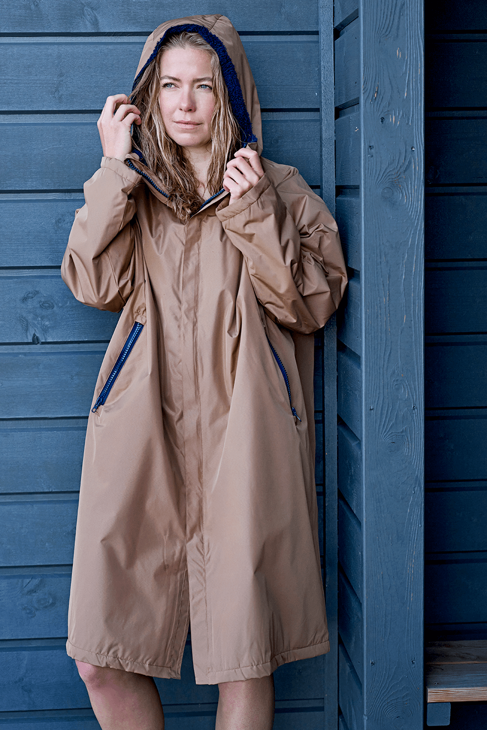 North-vinterbadekåben fra Södahl er skabt til mere end blot vinterbadning. Den fungerer som et hyggeligt og praktisk alternativ til et tæppe, når du har brug for ekstra varme. Som badekåbe er den er ideel efter en kold dukkert – eller f.eks. til turen til og fra træning eller til at have på ved cafébordet eller på sidelinjen til en fodboldkamp en kølig dag.