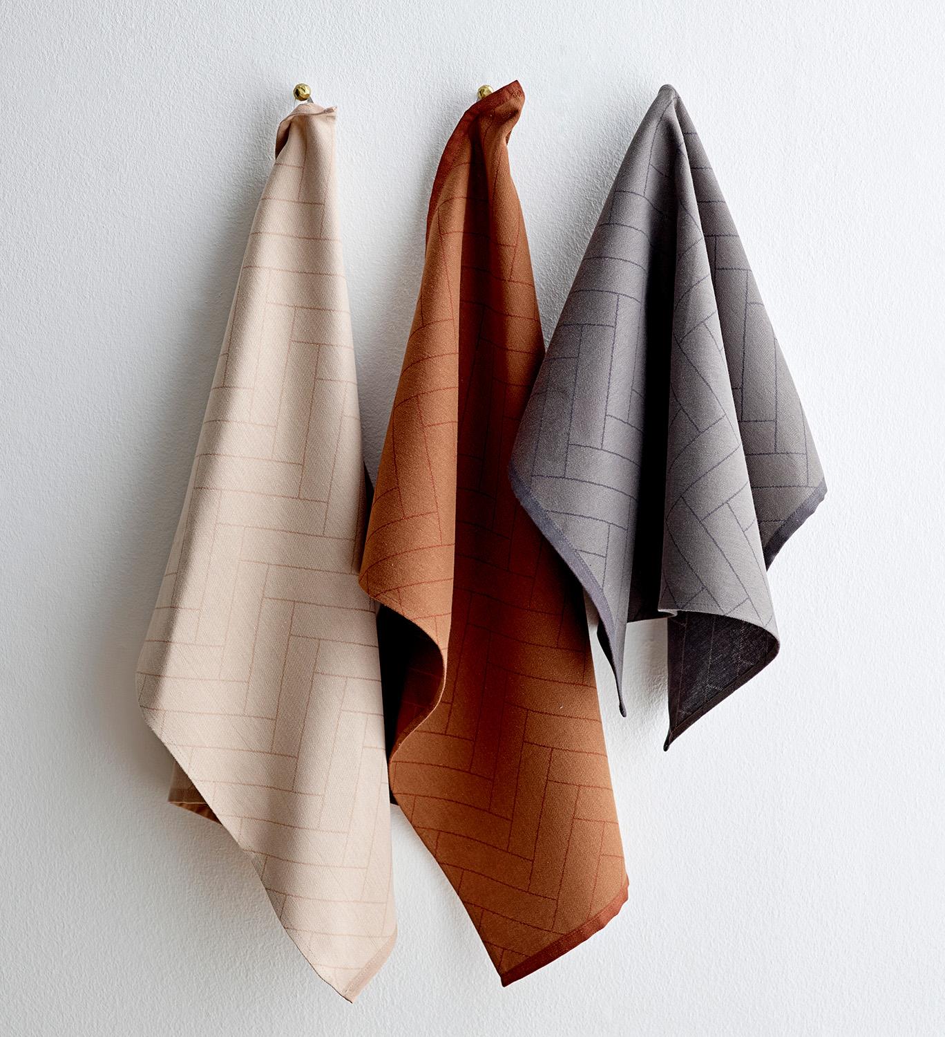 Södahls viskestykke-kollektion Tiles henter inspiration fra det klassiske sildebensmønster. Hvert viskestykke er vævet i en eksklusiv garnfarvet kvalitet ved hjælp af damaskvævning, hvilket fremhæver det detaljerede mønster. De to farvede garner giver viskestykket et elegant doubleface-look. Tiles er fremstillet af 100% bomuld og fås i her i Dusty Cedar. Miks og match de forskellige uancer for at skabe liv i køkknet.